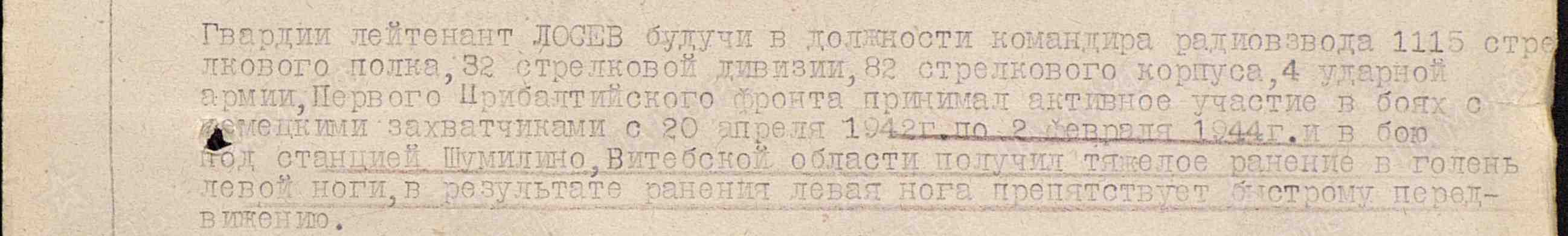 Мой прадед Лосев Иван Романович родился 07.07.1923 в деревне Кожемякино, Могилевская обл., Краснопольский р-н, Белорусская ССР. Во время Великой Отечественной войны Иван Романович служил в 1115 стрелковом полку 332 стрелковой дивизии 44 збс Днепропетровский ОВК, воевал с 1941 по 1944 год.